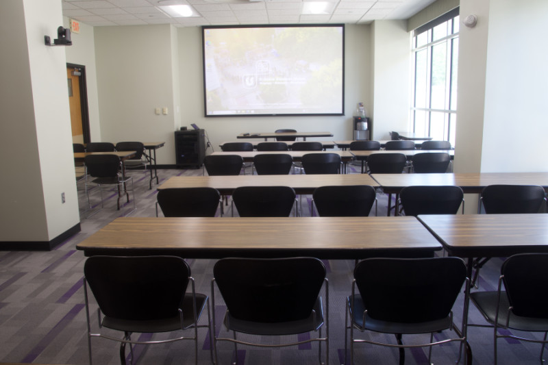 Ideal for small meetings or conference breakout space, Room 206 contains collaborative equipment for groups and organizations to utilize during a brainstorming session. Room is set up as a classroom, there will be a $40.00 fee to change the set-up.
