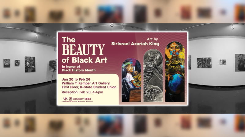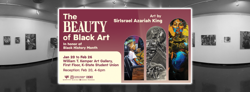 MANHATTAN, KS — The new exhibit at the William T. Kemper Art Gallery invites the campus and local community to explore the “Beauty of Black Art” in honor of Black History Month. Marking Artist SirIsrael Azariah King’s final exhibition before relocating from the United States, the exhibit offers a powerful and moving experience. This beautiful and meaningful collection is one you won’t want to miss