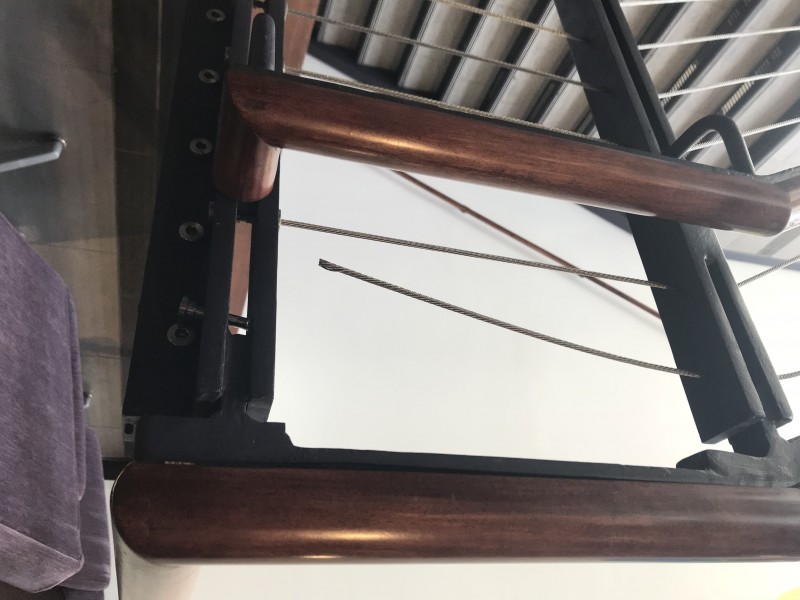 Stairwell railing wires are broken and need to be repaired on the new south stairs.