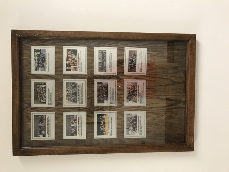 Replace the glass in the student leadership frame that was just installed in the second-floor hallway by the Konza Room. See attached photos.