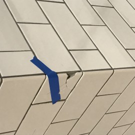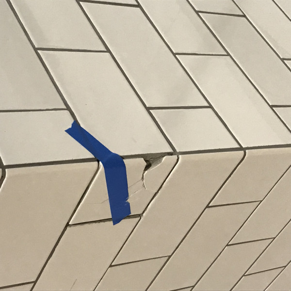 Broken tile on wall at Chick Fil A