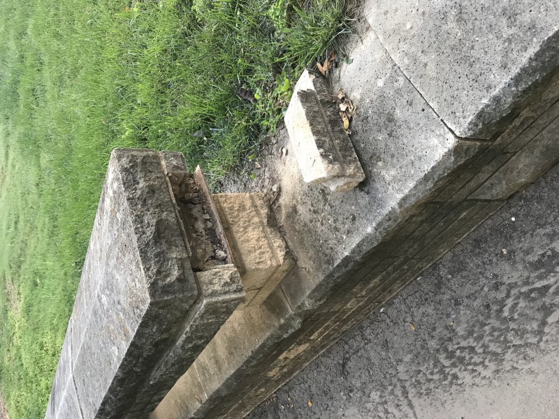 A large piece of masonry has fallen off a retaining wall on the east side of the Union and needs replacement/repair.