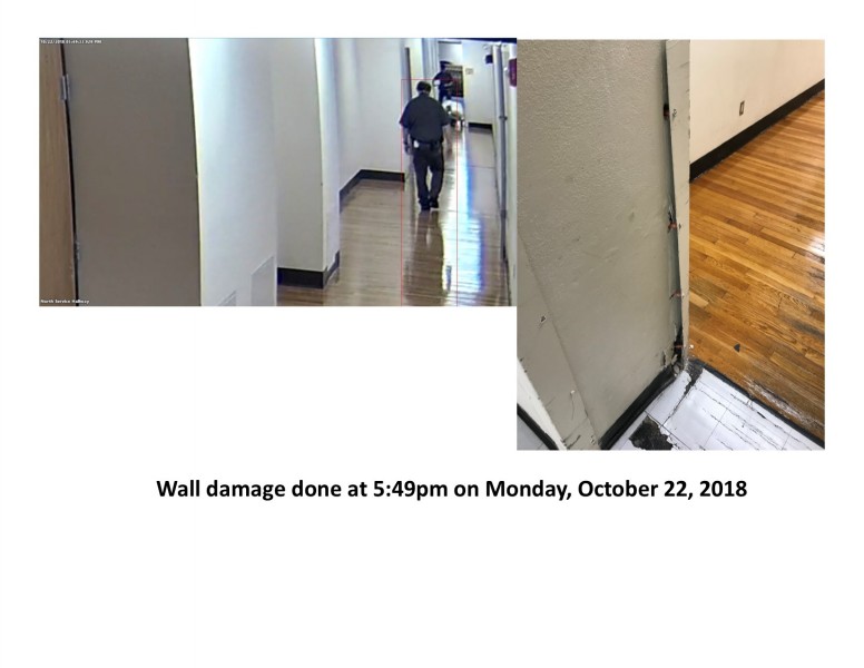 Repair damaged safety corner on second floor service hallway wall.