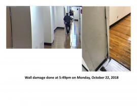 Damaged corner of wall in service hallway damaged and needs repair.