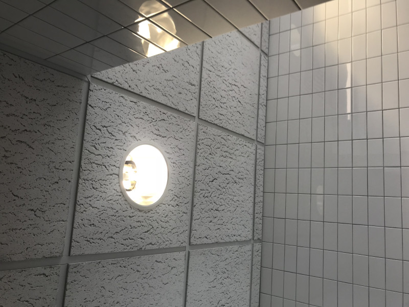 Replace can light bulb in 2nd floor north women's restroom. First light as you enter
