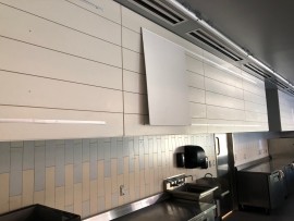 Measure menu wall behind Salad Spot. Top to bottom, side to side and each section. See picture and ask Audrey or Jeff W if you have questions.