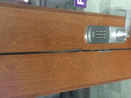Door seal for room 004. Is coming unglued and hanging out the front of the door