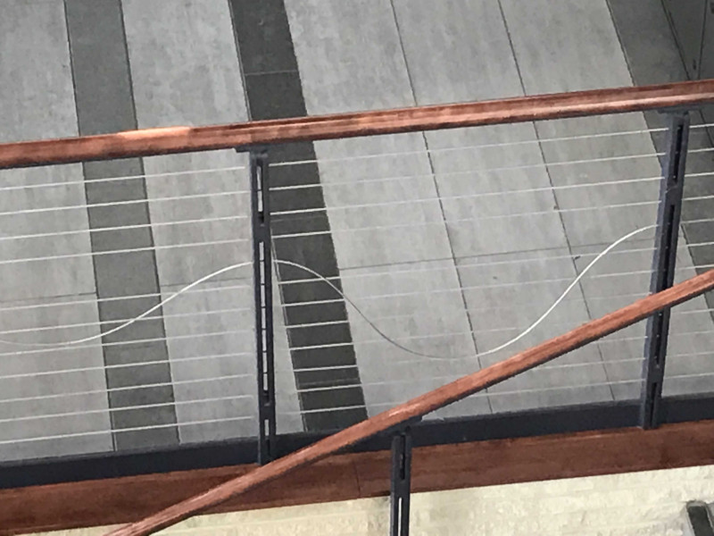 A wire on the railing at the ground floor south entrance stairs has come loose and needs re-attached.
