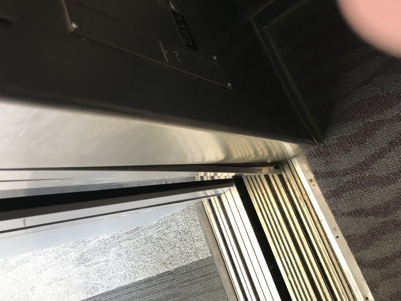 Door edging in the south elevator has been bent out from the door edge.