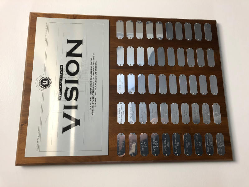 Please remove the Vision Award Plaque and bring to the Union Marketing office.