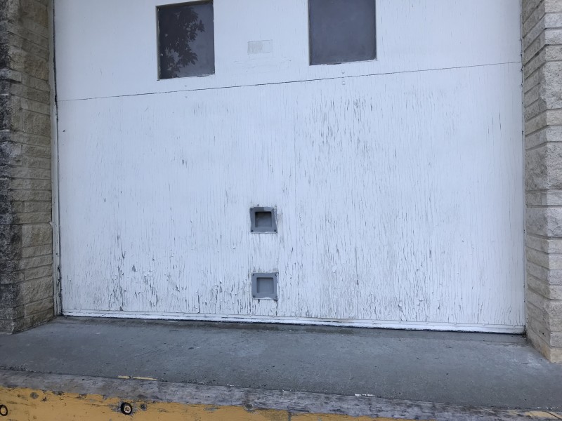 The dock door paint is cracking and starting to peel. It need to be scraped down and repainted.