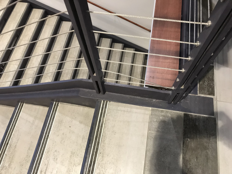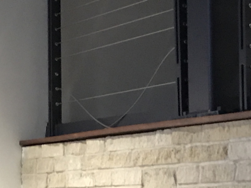 There are two railing wires that have come loose. The first is at the top of the stairway from ground to first floor near the Fireside Lounge. The second is under this same stairway on the railing next to the stairs leading to the south entrance to the Bowling Center.
