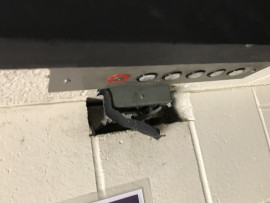 The electric box next to the freight elevator on ground floor is being held together by tape and does not have a proper cover. This could likely be sited in a fire inspection.