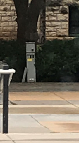 The cover panel on the electric tower on the north side of Bosco Plaza has come off and needs to be reinstalled.
