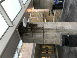 On the north side of the Union, water has been draining out of the canopy and the debris in the trough is staining a column on the west. This will require power washing possibly with need for some cleaning chemical to get this washed off.
