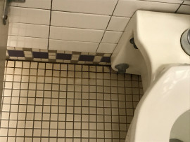 The second toilet in the third floor men's restroom has a seal leak between the toilet and the wall and will require some serious attention as this has been listed several times and the issue continues.