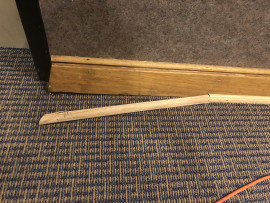 Wood is pulled away from the wall and nails are sticking out in room 226.