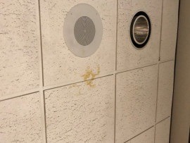 Stained ceiling tile at the front of the Big 12 Room need to be replaced.