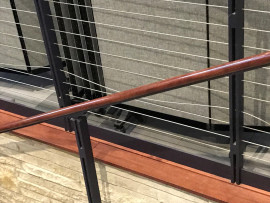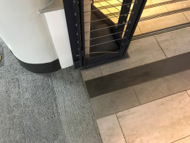 South entrance on the west railing First floor at the top of the stairs from ground floor. Second floor at the top of the center stairs.