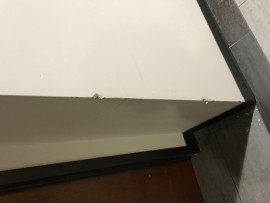 The corner of a wall near Radina's on first floor has been struck and damaged and requires patch and painting.