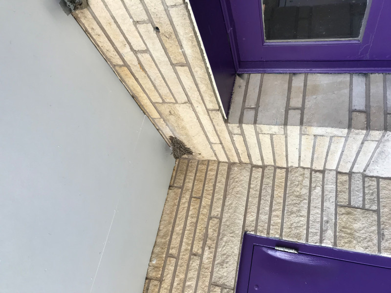 Birds are building nests at the loading dock area. One in particular is being built on top of a sprinkler head. These need to be removed and the locations washed down.