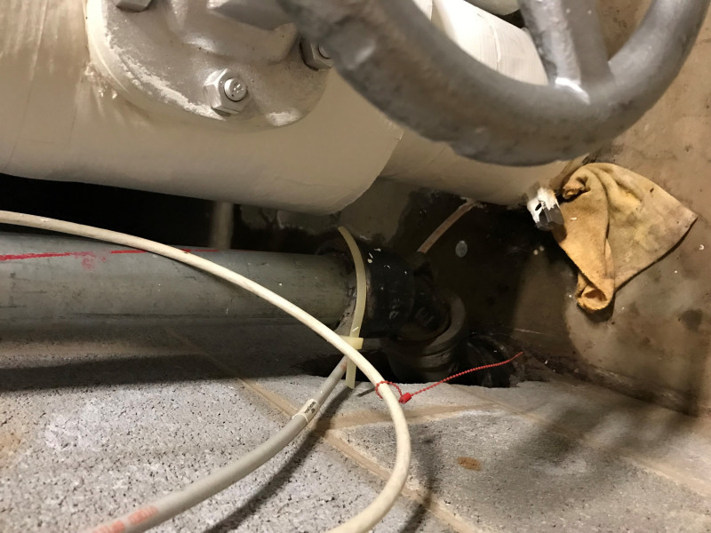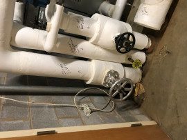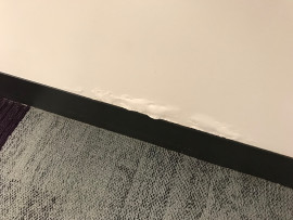 There is a leaking hot water line/valve in Room 223 mechanical room that needs immediate attention. This leak is causing damage to the hallway drywall.