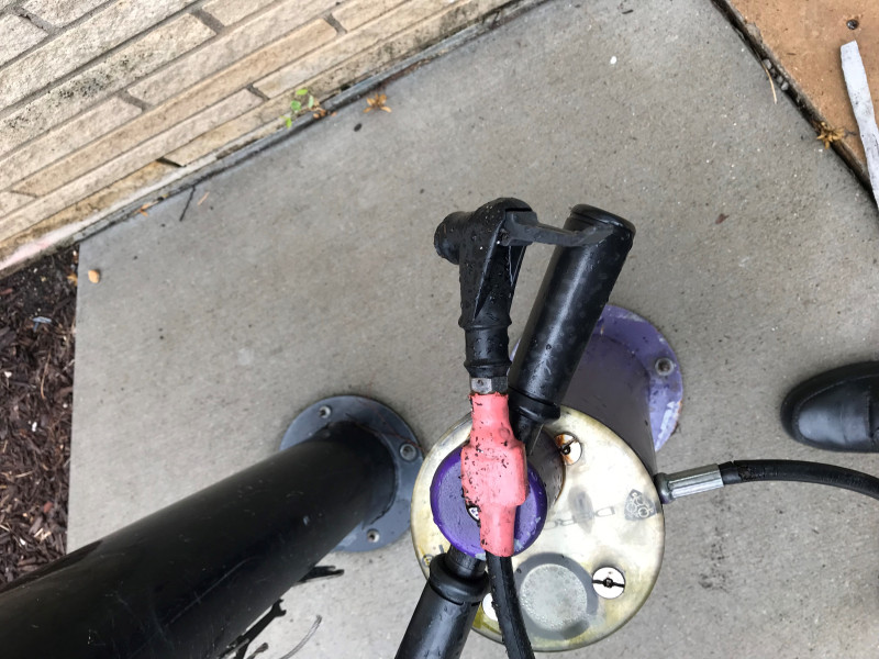 Air nozzle on the outside air pump is damaged and needs repair.