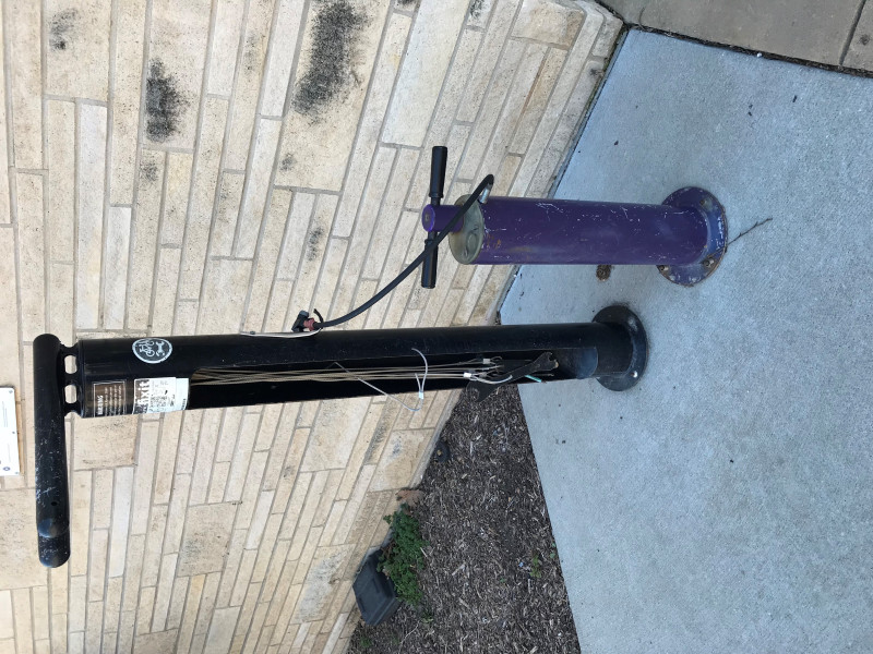 Air pump on the north side of the Union is not working. Also there is a tool that has been cut off of the tool set.