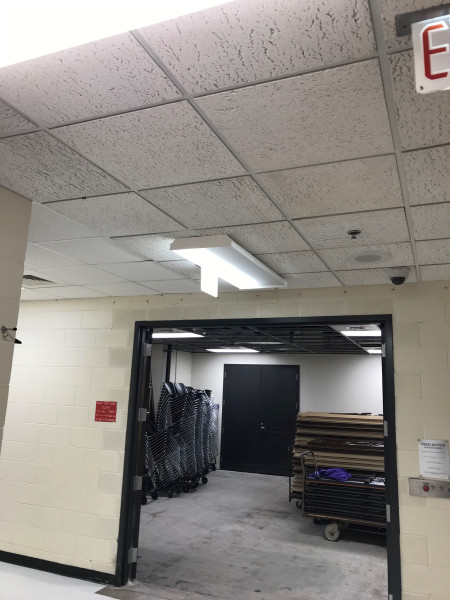 A light is out and needs replacement in the service hallway behind Flinthills room.