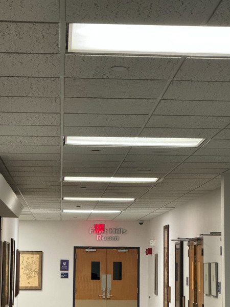 It appears that half of the fluorescent lights are out in the light fixtures in the Cottonwood/Flinthills hallway.