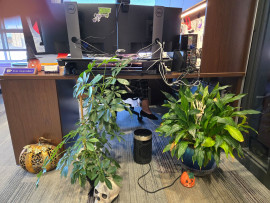 We would like a privacy panel for the front of Erin's desk. It doesn't have to be the same material that the desk is made out of; it could be something painted K-State purple or lavender. Right now we just have a couple of plants in front of the desk to provide a modicum of privacy. THANK YOU!