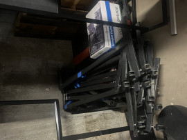 On the left side of the small cage, there are Herman Miller canvas walls and some type of metal legs that are stored in the marketing area that need to be moved.