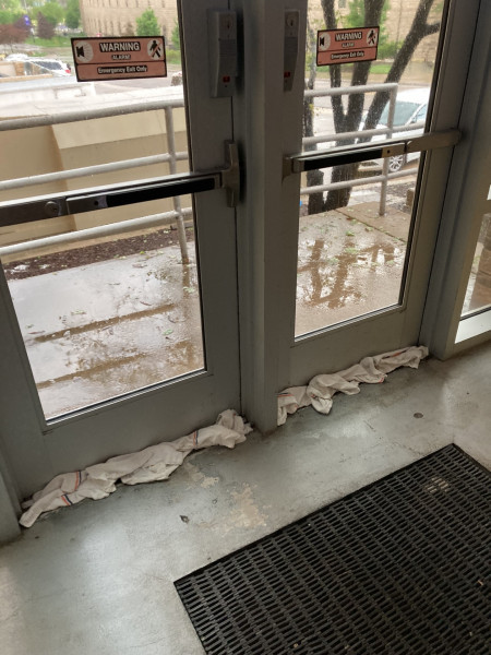 Water came in from under the doors on the NW stairwell and ran down the stairs.