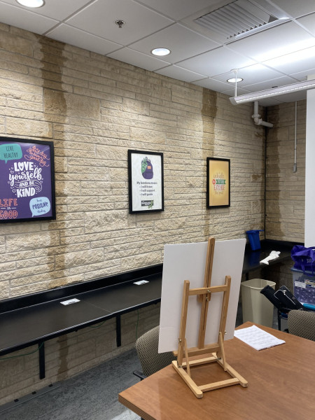 Leaks ran down the stone wall in the back room of wellness center in 3 separate spots.