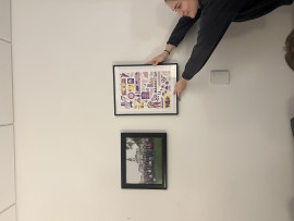 Hang picture frames in office
