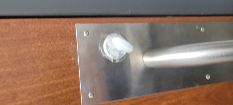 The lock in the Bluemont kitchen that is closest to the fridge/freezer, as you walk into the Bluemont room itself, is almost out of the lock. See pictures!
