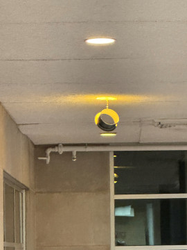 A light ring/bracket has come out of the ceiling in the NE corner of the Courtyard and need to be repaired.