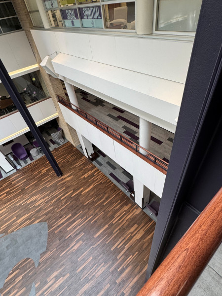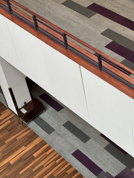 Loose acoustical tile on the south 1st floor wall of the Courtyard appears loose. I believe these were glued in place and may need to be reglued and clamped in place to dry.