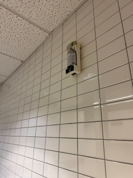 Damaged air freshener in Bowling Center men's bathroom