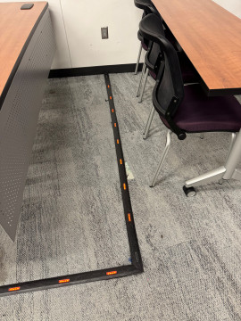 There is a portion of the floor safety lighting in Wildcat Chamber that has come loose and apart and needs repair. In addition, the carpet under this area has come loose and is not adhering to the floor.
