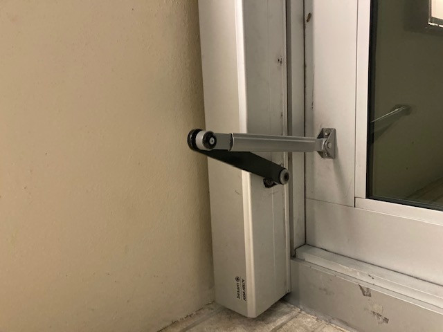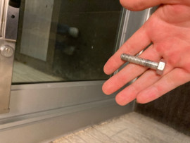 The farthest left door has a bolt that came off from the top. The door still closes, opens, and latches properly.