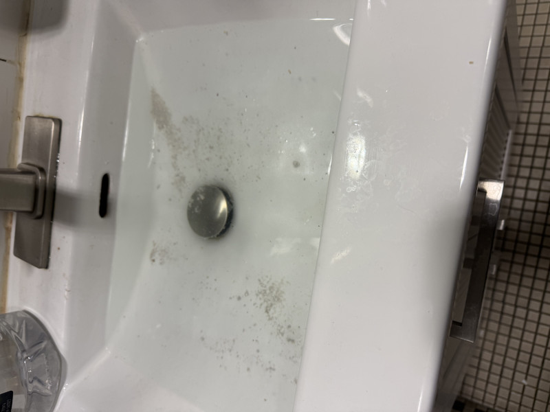 Men’s bathroom sink won’t drain. Also paper towel dispenser won’t work Also the location is wrong as Mens is sb003a