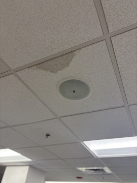 There’s a leak in a ceiling tile that has a speaker in the electronics side of the book store from the drain in cats den above.