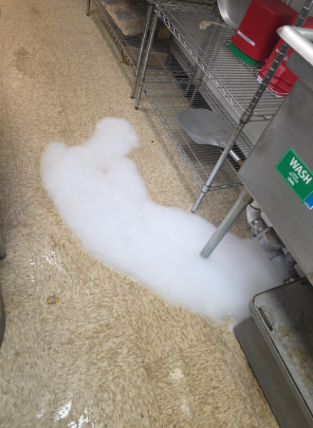 The Underneath the sink in Hunts Brothers Pizza is leaking water and Soap pretty badly to the point it's starting to flood the whole back storage area near the sink. Need to check to see if the pipes are molding and or a leakage