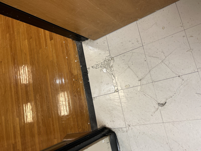 There is a broken title just outside the exit door the U room of the ballroom.